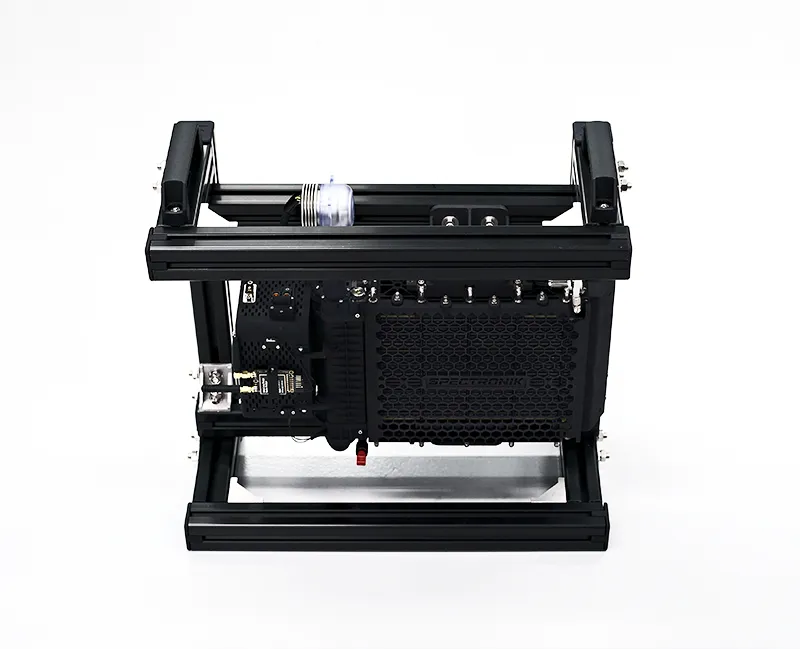 | Комплектация | Топливный элемент Spectronik Protium-1000: / Блок топливных элементов с графитовыми пластинами на 30 ячеек с защитным кожухом, коллектором для окислителя и колпаком для потока охлаждающего воздуха. / Электронный контроллер с защитным кожухом / Система охлаждения (вентиляторы со встроенным источником питания постоянного тока и ШИМ-управлением) / Система подачи окислителя и топлива (вентилятор, электромагнитные клапаны, датчик давления газа, газовая трубка и разъем) / Пользовательские интерфейсы (кнопка включения-выключения, светодиод состояния, выходной разъем XT-90, переключатель BOP, разъем для внешнего источника питания) / Алюминиевая монтажная стойка для настольных испытаний и защиты при транспортировке / Отчет о заводских приемочных испытаниях (FAT) / Руководство |