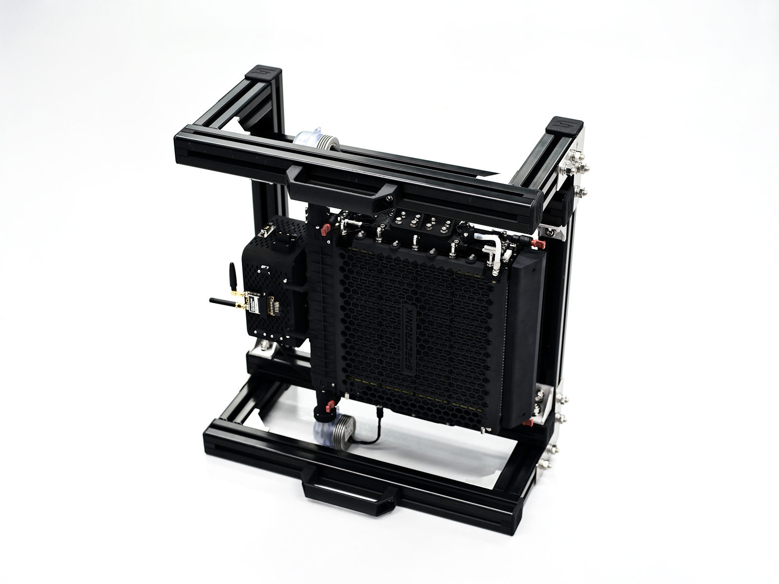 Комплектация | Топливный элемент Spectronik Protium-1000: / Блок топливных элементов с графитовыми пластинами на 45 ячеек с защитным кожухом, коллектором для окислителя и колпаком для потока охлаждающего воздуха / Электронный контроллер с защитным кожухом / Система охлаждения (вентиляторы со встроенным источником питания постоянного тока и ШИМ-управлением) / Система подачи окислителя и топлива (вентилятор, электромагнитные клапаны, датчик давления газа, газовая трубка и разъем) / Пользовательские интерфейсы (кнопка включения-выключения, светодиод состояния, выходной разъем XT-90, переключатель BOP, разъем для внешнего источника питания) / Алюминиевая монтажная стойка для настольных испытаний и защиты при транспортировке / Отчет о заводских приемочных испытаниях (FAT) / Руководство |