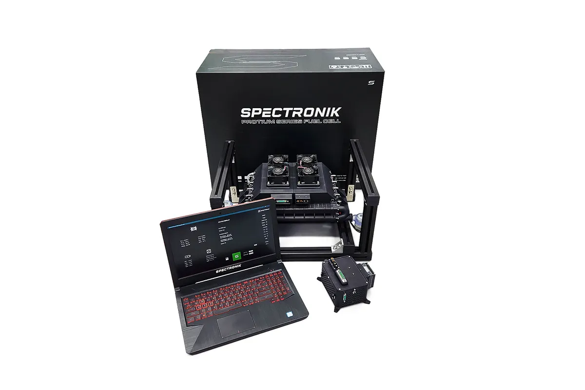 | Комплектация | Топливный элемент Spectronik Protium-2000: / Блок топливных элементов с графитовыми пластинами на 60 ячеек с защитным кожухом, коллектором для окислителя и колпаком для потока охлаждающего воздуха / Электронный контроллер с защитным кожухом / Система охлаждения (вентиляторы со встроенным источником питания постоянного тока и ШИМ-управлением) / Система подачи окислителя и топлива (вентилятор, электромагнитные клапаны, датчик давления газа, газовая трубка и разъем) / Пользовательские интерфейсы (кнопка включения-выключения, светодиод состояния, выходной разъем XT-90, переключатель BOP, разъем для внешнего источника питания) / Алюминиевая монтажная стойка для настольных испытаний и защиты при транспортировке / Отчет о заводских приемочных испытаниях (FAT) / Руководство |