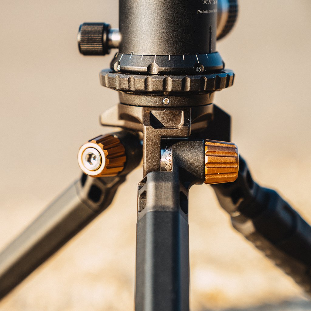 В триподе есть возможность регулирования наклона ног, чтобы можно было выбрать одно из более чем 140 положений для точной регулировки. Конструкция штатива на 95% выполнена из алюминия, отличается надежностью и рассчитана на длительный срок эксплуатации в самых суровых условиях. Угол ручки в 35 градусов позволяет производить быструю замену крепления.
