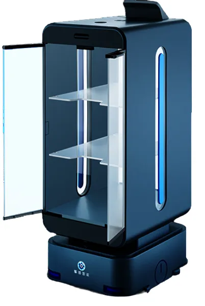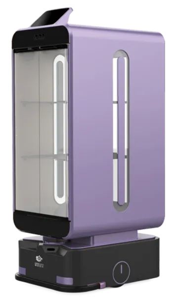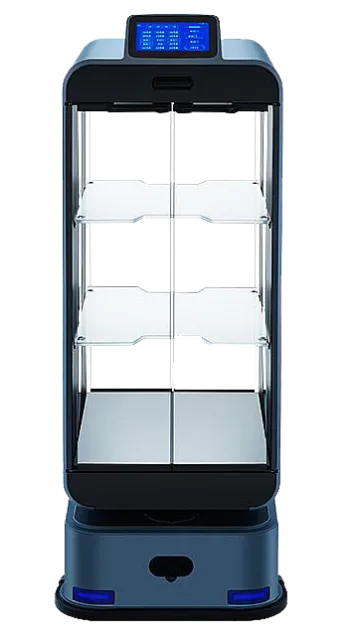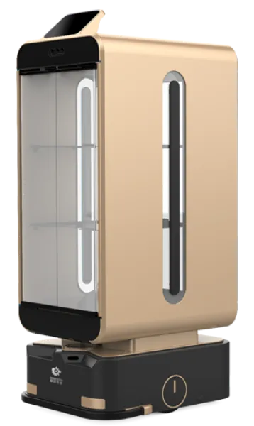 Эта модель отличается закрытой конструкцией с поддержкой автоматической очистки пространства внутри. При доставке внутри такого робота блюда остаются защищенными от внешних факторов: пыли, грязи и других загрязнений. Клиенты получают блюда, которые минимально контактировали с окружающей средой и остались без загрязнений. Благодаря двусторонним дверцам процедура подачи блюда максимально упрощена. Кабина с подносами защищена от воды и пыли, является маслостойкой и быстро очищается от внешних загрязнений. Эта модель больше адаптирована к разным условиям эксплуатации и может работать в самых сложных условиях.
