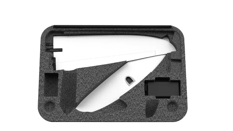 Защитный кейс из комплекта имеет жесткие стенки и тщательно спроектированную организацию внутри. Здесь есть ячейка для хранения дрона, пульта управления и других аксессуаров. Мягкие ячейки защищают от ударов и вибрации во время транспортировки и хранения. Кейс устойчив к ударам и падениями, является водонепроницаемым.