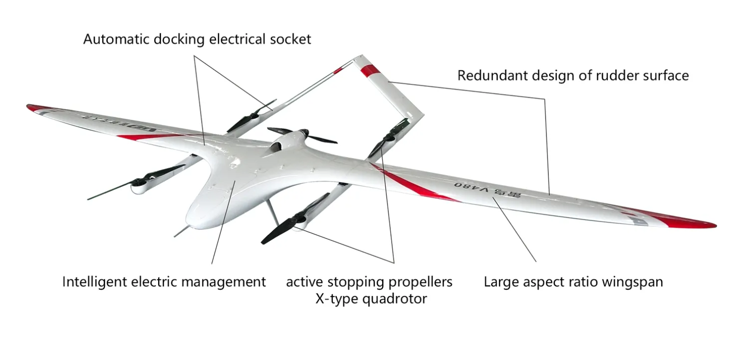 VTOL дрон Shenzhen Smart Drone отличается увеличенной дальностью действия 1080 км и способен облететь большую по площади территорию. Система энергоснабжения обеспечивает полет в течение 10 часов. Максимальная скорость полета составляет 144 км/час. Устройство сможет провести разведку местности и собрать данные на значительном расстоянии от места вылета.