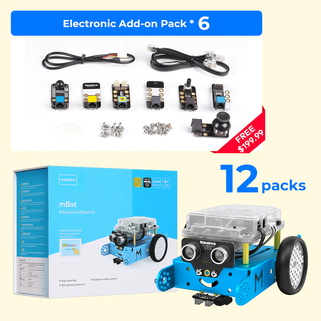 | Дополнительные возможности | mBot — отличная платформа для создания учебного курса по программированию! Его универсальное решение позволяет детям получать практические навыки программирования, электроники и робототехники, которые отлично подходят для использования в классах. |