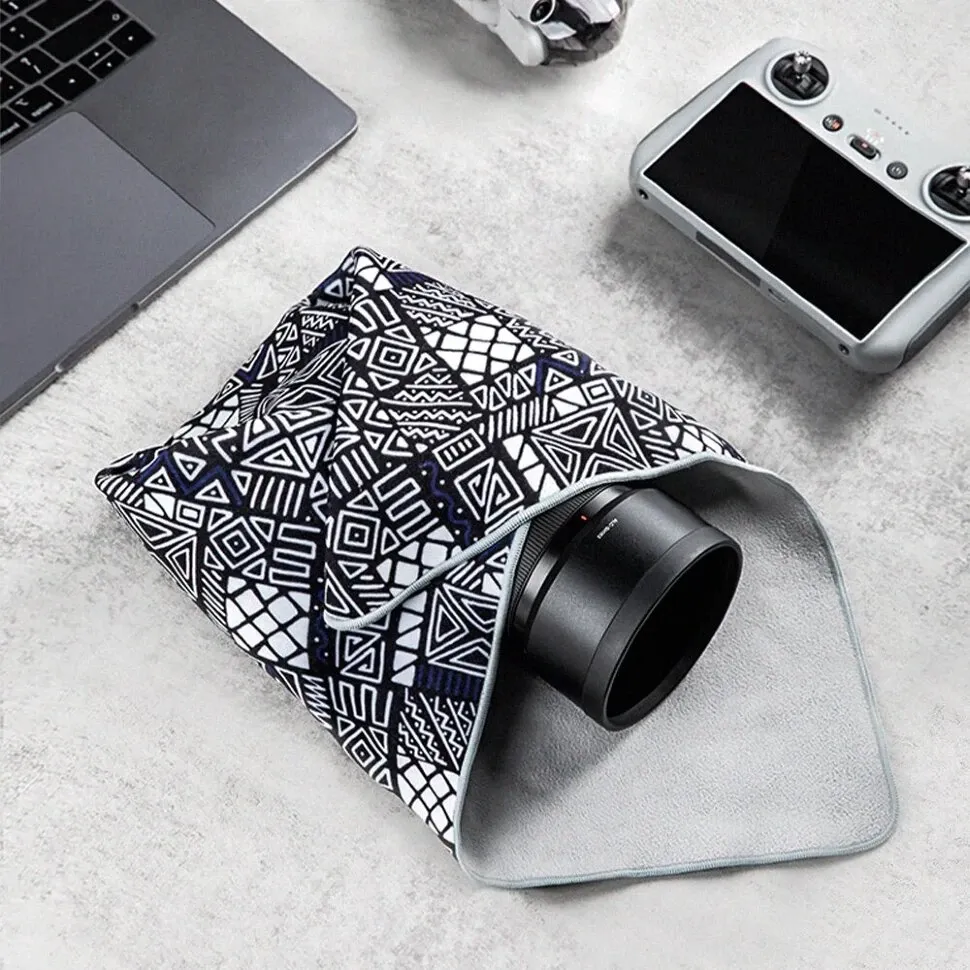 Защитная ткань PGYTECH Protective Wrap (Geometry) M – главное достоинство защитной ткани это многофункциональность, предназначенной для бережной транспортировки и хранения фото- и видеотехники, квадрокоптеров, планшетов и других ценных устройств. Этот инновационный аксессуар представляет собой уникальное решение для фотографов, видеооператоров и владельцев дронов, которым требуется надежная защита оборудования в полевых условиях или при частых перемещениях. Защитная ткань изготовлена из высококачественного полиэстера, обеспечивающего оптимальное сочетание прочности и легкости.