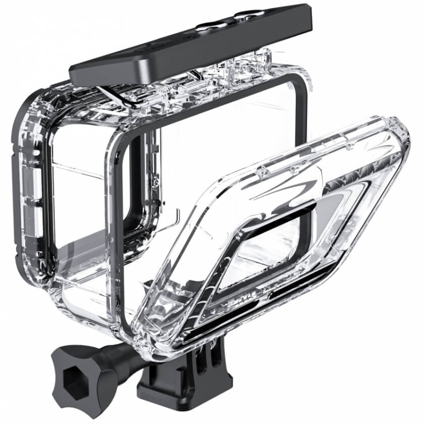 Защитный кейс Insta360 ONE R/RS 4K Edition Dive Case изготавливается из прочного пластикового полимера. Полностью светопроницаем и не ухудшает качества видеоизображения. Содержит набор кнопок с силиконовыми герметичными проставками, что позволяет управлять настройками съемки под водой. Защищен по стандарту IPX8. Предусмотрены ушки для крепления с резьбой 1/4 дюйма для размещения на штативах, гидроциклах, яхтах, гидрокостюме и акваланге. Полностью совместим с современными компактными камерами серий ONE R и RS 4K Edition.